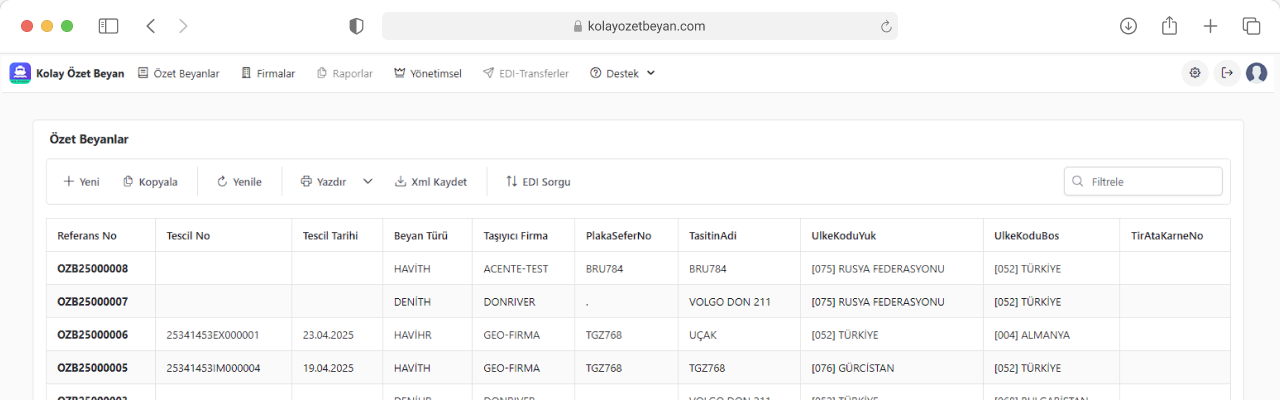Gümrüklerde kullandığınız BİLGE Sistemi Özet Beyan modülüne benzer arayüzümüz ile eğitime gerek olmadan hemen beyan hazırlamaya başlayabilirsiniz.